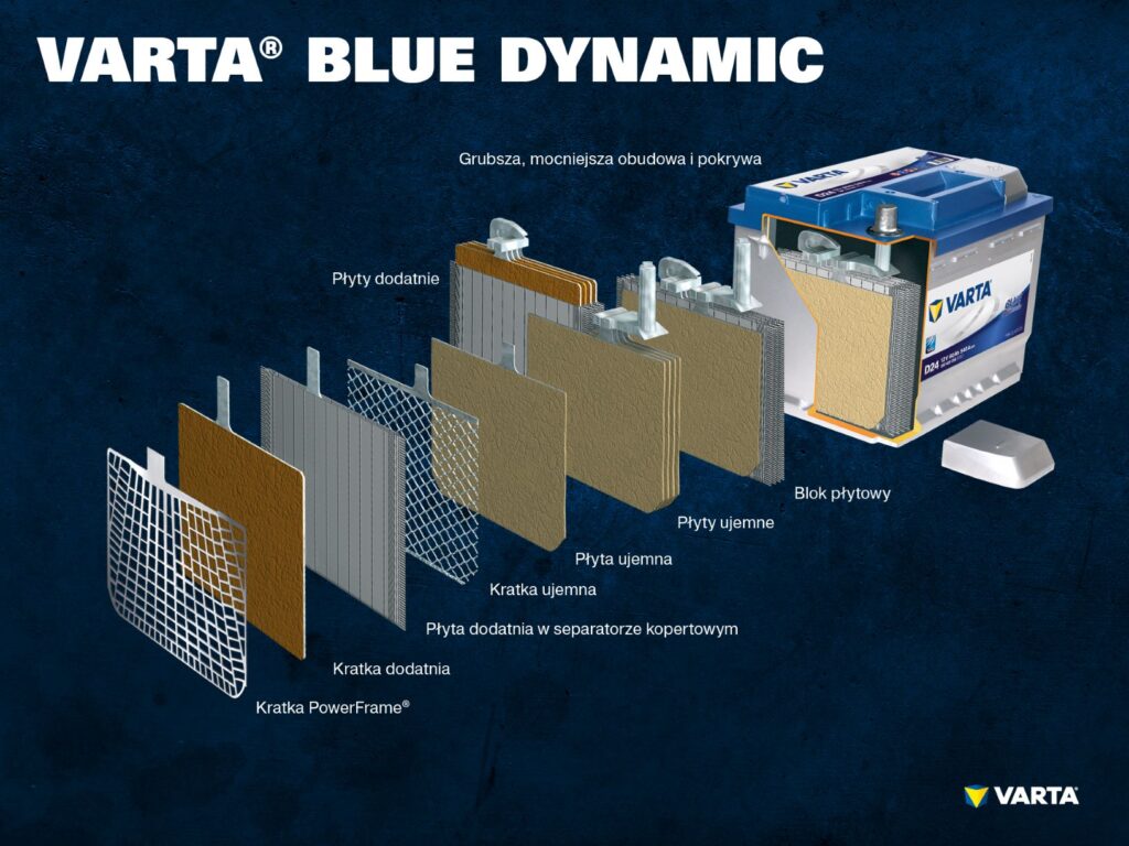 Akumulator składa się więc z: obudowy, ogniwa, separatora, kratki, płyty dodatniej oraz ujemnej i elektrolitu. Obudowa akumulatora musi być wykonana z materiału odpornego na działanie kwasu. Ogniwa natomiast to połączone ze sobą dodatnie lub ujemne płyty, oddzielone separatorem. Każde z nich wytwarza napięcie 2,1V. Płyta dodatnia w akumulatorze kwasowo-ołowiowym składa się z tlenku ołowiu. Płyta ujemna